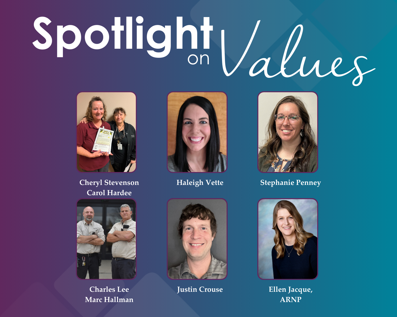 Eight members of the Waverly Health Center (WHC) team have been named November/December Spotlight on Values award winners. Nominated by co-workers, patients and members of the community, these individuals are examples of WHC’s values in action.