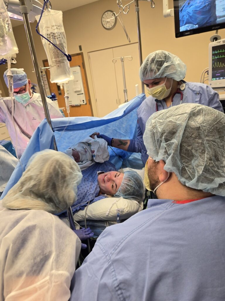 Emerley was delivered by Dr. Ivey, with Dr. Dupic assisting, and surrounded by a team Shantel knew and trusted. Hannah and Jodi, her delivery nurses, were by her side, along with Stacy Huck, ARNP, who also came in to be part of the special moment.